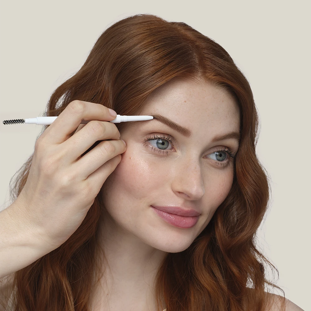 Model trägt Augenbrauenstift auf