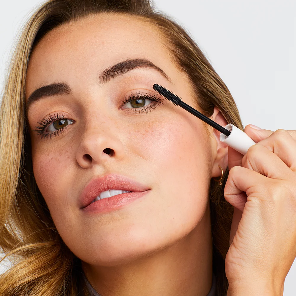 Model trägt Mascara auf